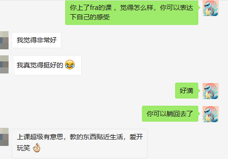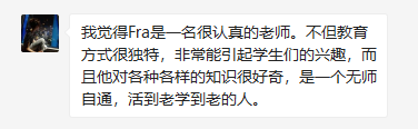孩子们刚开始觉得Fra很严格,后面也慢慢地理解了他的良苦用心,还会进而拓展知识点,孩子们表示慢慢地跟着他的上课节奏走,知识点又进一步加深了了解。
