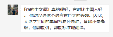 Fra老师每天都会要求我们写下30个单词甚至更多,第二天都要听写或者翻译。都是很实用的单词,如果第二天听写错的很多的话,第三天会有更多单词。痛并快乐着!