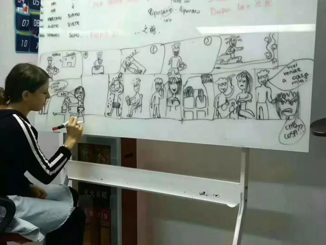 Veronica的板书真的很魔性,但同学们也确实更好地理解了意大利语的意思。真的是被教育事业耽误的连环漫画家....