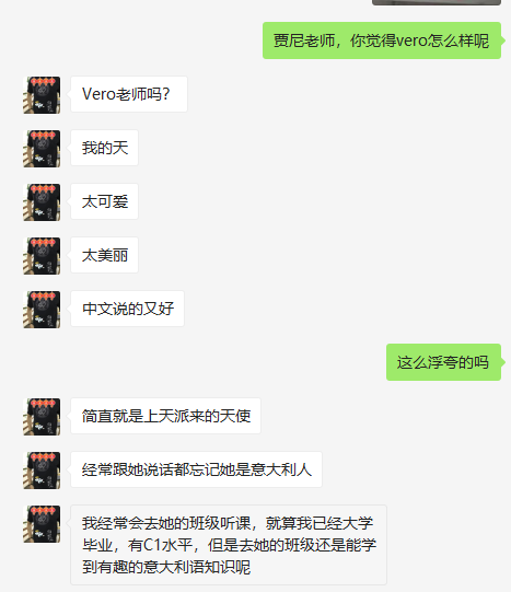 老师拥有6年意大利语教授经验,已帮助300+学生学习意大利语。中文等级为HSK六级,是新汉语水平考试HSK的最高等级。讲真,中文跟意大利讲的一样好。