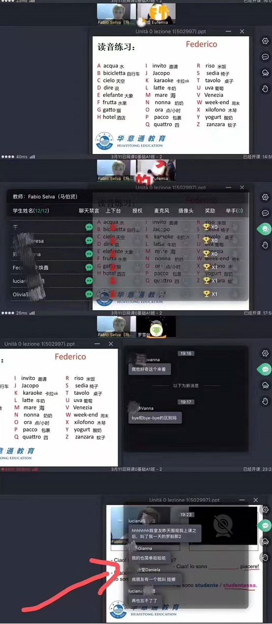 意大利语籍外教实时在线,纠正你的发音。咱们是12个小班授课,不会再多了!超过20人的班级你别想了,人少老师才能全程盯着你。就跟村口的大喇叭一样,让你重要信息牢记于心。