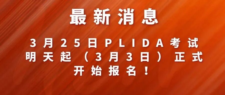 3月25日PLIDA考试明天起(3月3日)北京和广州考点正式开始报名!(点击图片跳转链接)