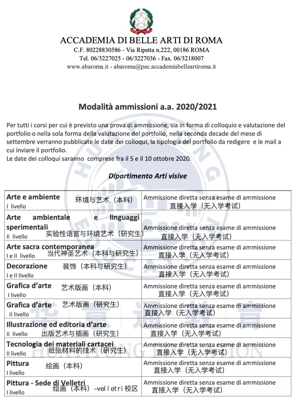 受今年疫情的影响,罗马美院来了一次“前无古人,后无来者”的免试!不过是部分专业免试,还是有一部分专业需要作品集面试的。各专业的具体情况po在下面了: