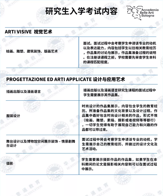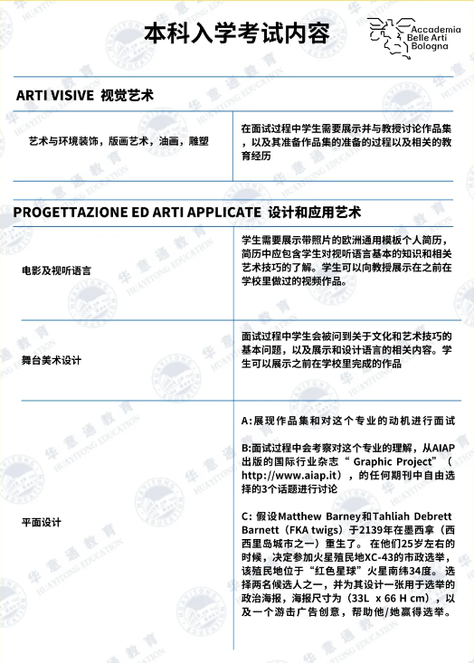 首先,我们一起来看看今年博洛尼亚美院本科各专业的考试内容:
