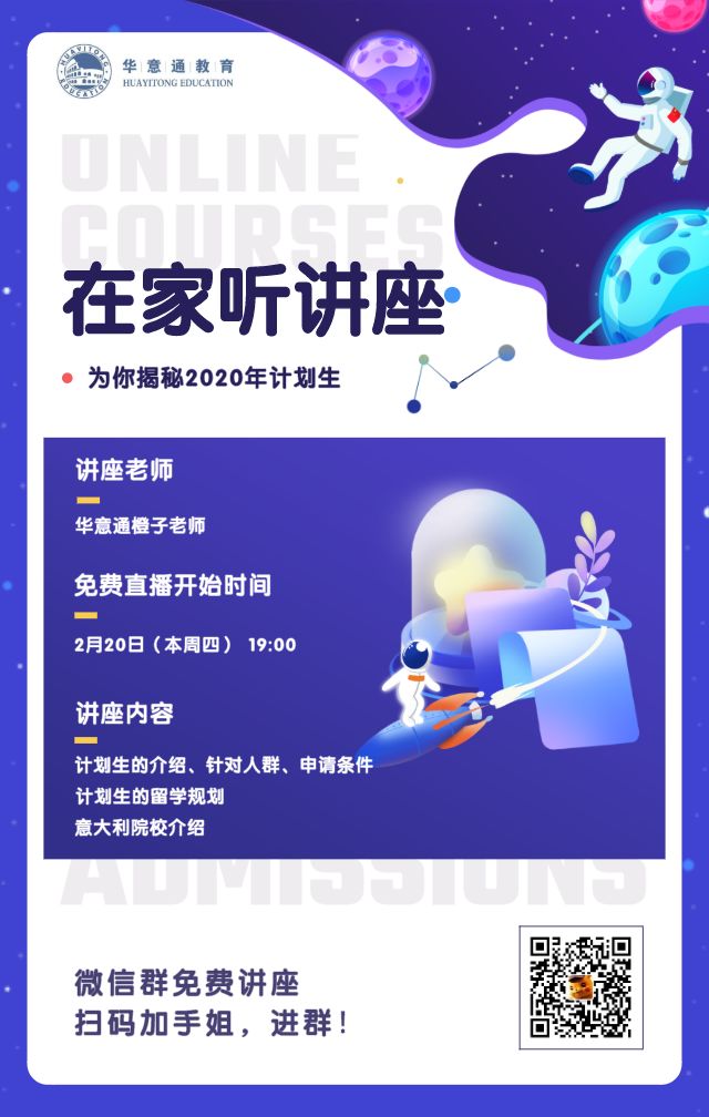 意大利留学的途径、领区划分、预注册、签证这些我都不再赘述,我们来下一阶段,2020年计划生的留学安排。(不是国际生安排是因为,2020年的国际生我们在一月份就不收了,2021年现在写又太早,所以先来计划生。)