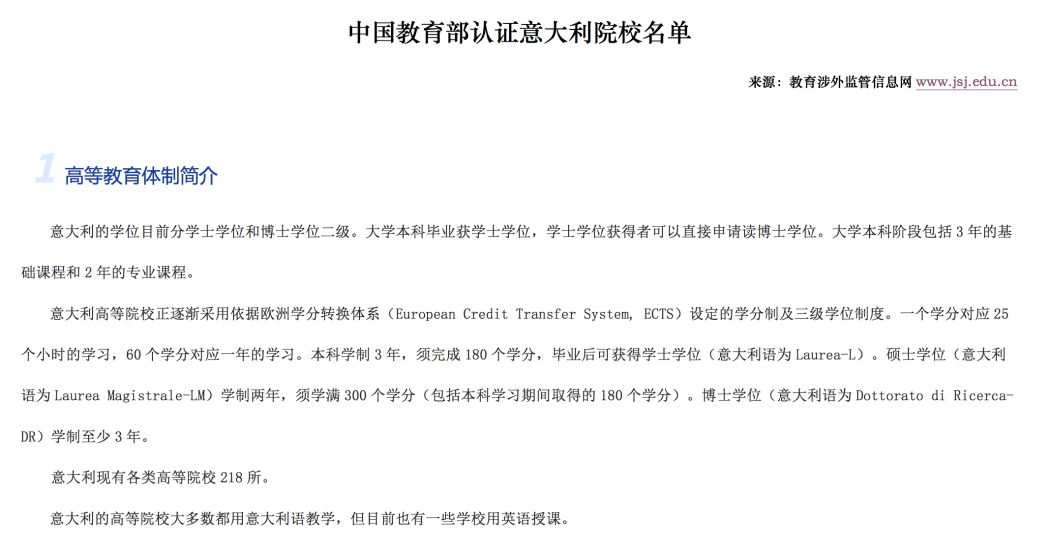 前段时间中国教育部的涉外监管信息网终于更新了意大利被认证的院校情况。想知道自己的院校以及所就读的专业到底被不被中国教育部认证,可以愉快的查询起来啦。