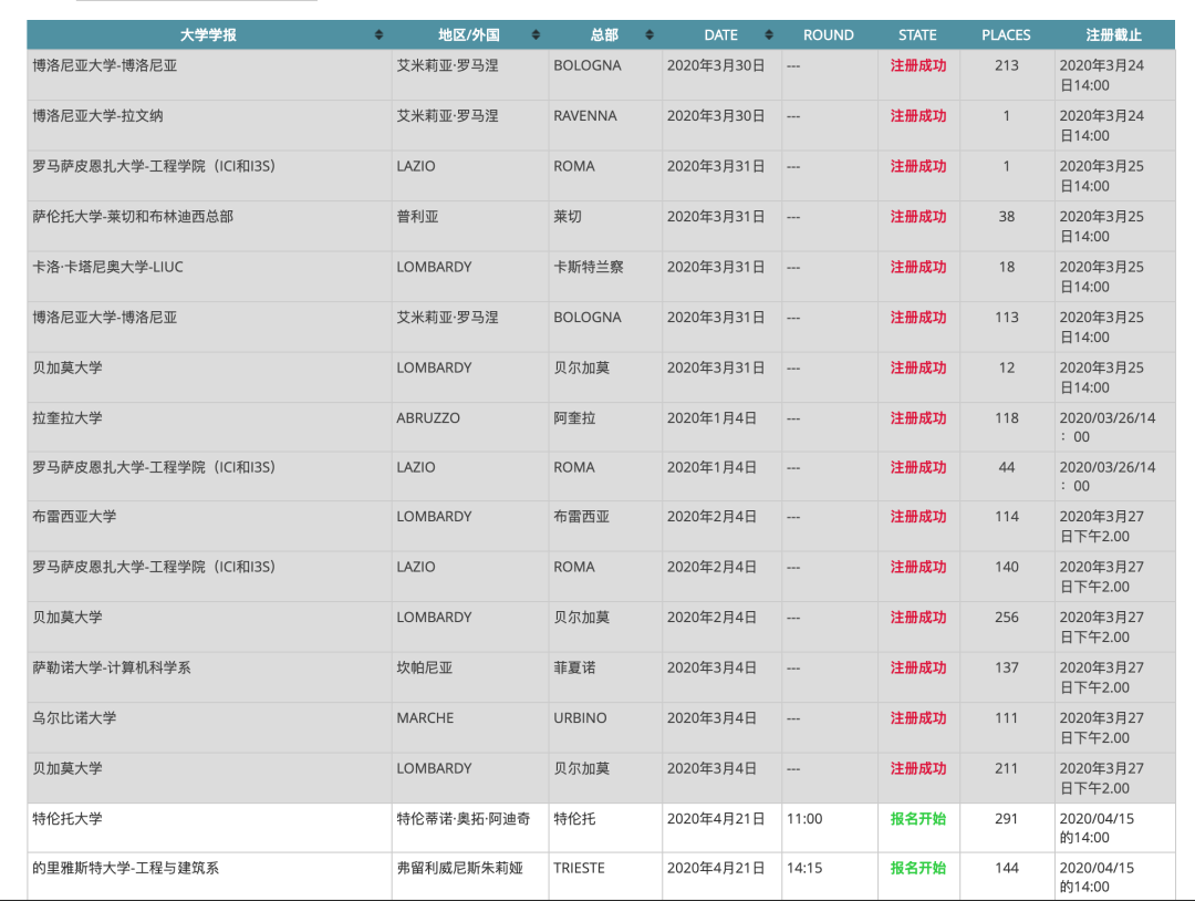 每个学校的入学考试有好多轮,因此大家要经常去预注册大学的官网或者Cisia的官网去看看自己的考试有没有开始报名,不要错过了考试。