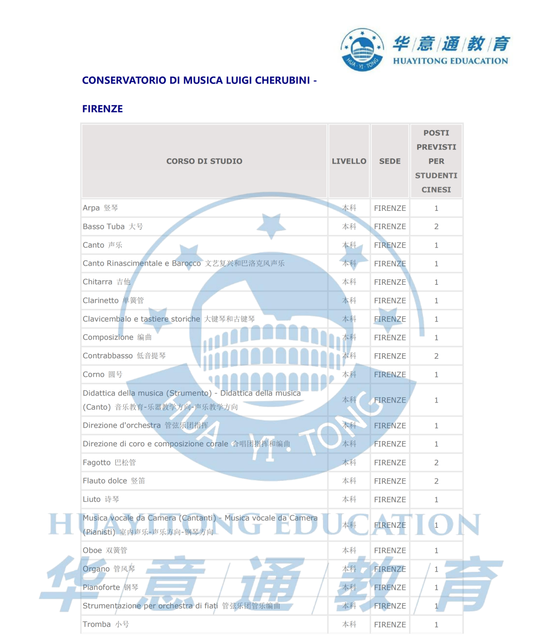 2020/2021佛罗伦萨音乐学院计划生招生简章: