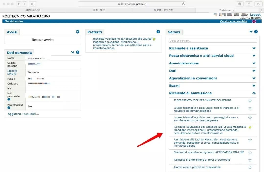 9、申请完毕后的回执单,打印出来手写签字,再和大学成绩单中英文版本一起邮寄到米兰理工。