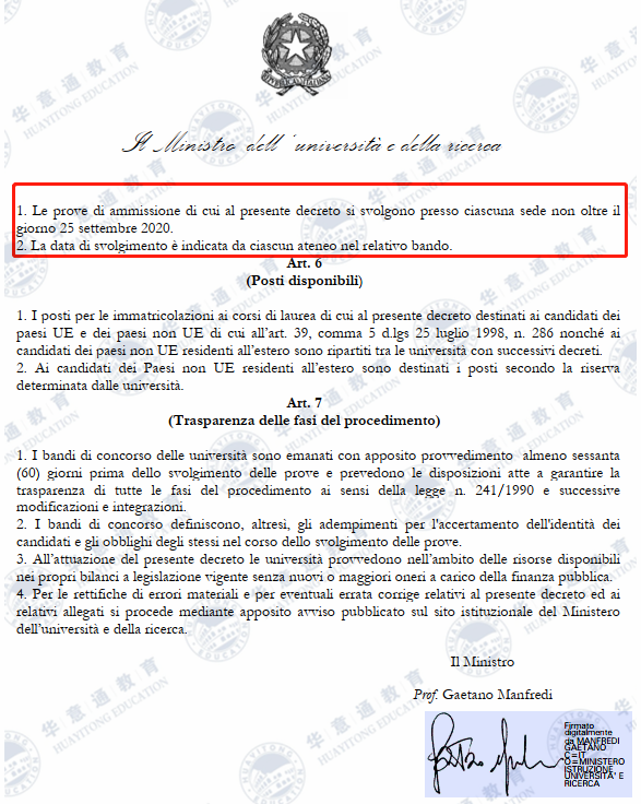 通知丨最新意大利国家统考2020/2021学年入学考试日期