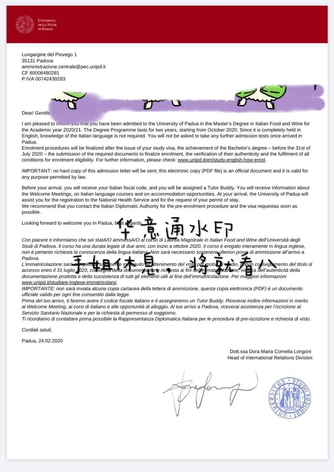 拿到帕多瓦大学