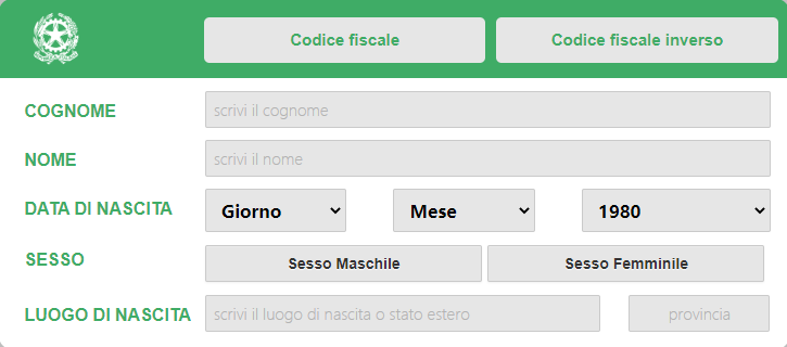 将个人信息填写进去,然后点击'CALCOLA'就能看到属于我们自己由16位号码组成的税号了。