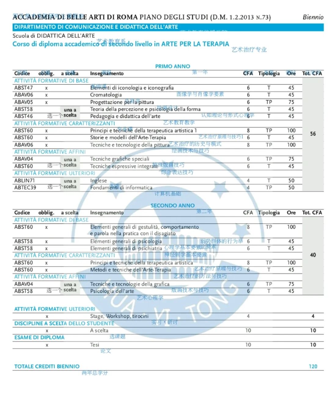 我们来看看罗马美院“艺术治疗”专业学些什么,来作为一个参考:
