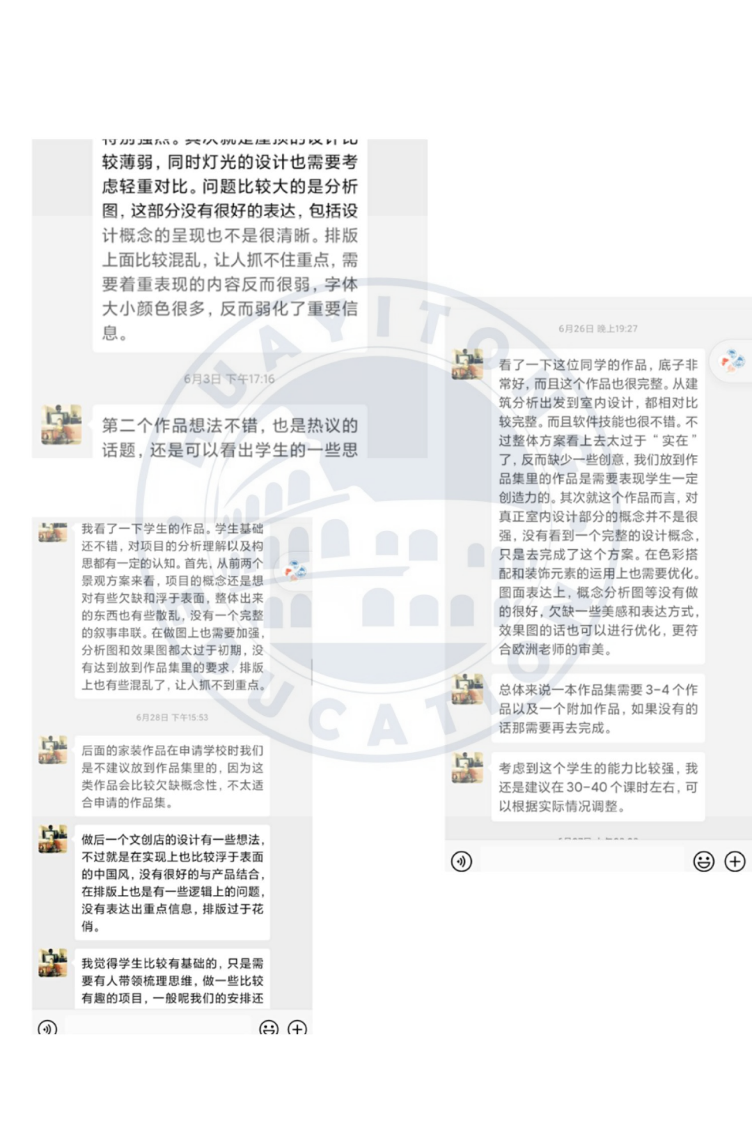 我觉得从我个人的学习和生活经历来说,我非常了解意大利教授的喜好特别是米兰理工大学的特点。同时我的建筑和室内设计的专业知识又能够引导学生去很好的完成每一个设计项目,从整体去考虑一本作品集。在做项目时我更愿意引导学生去思考,而不是我让做什么做什么,如果这样的话不仅会丧失掉学生的个人特色,同时对提高学生的设计能力也是很不利的,我希望我的学生能在进入到意大利高校的学习中时,能更好的去完成自己的学业。