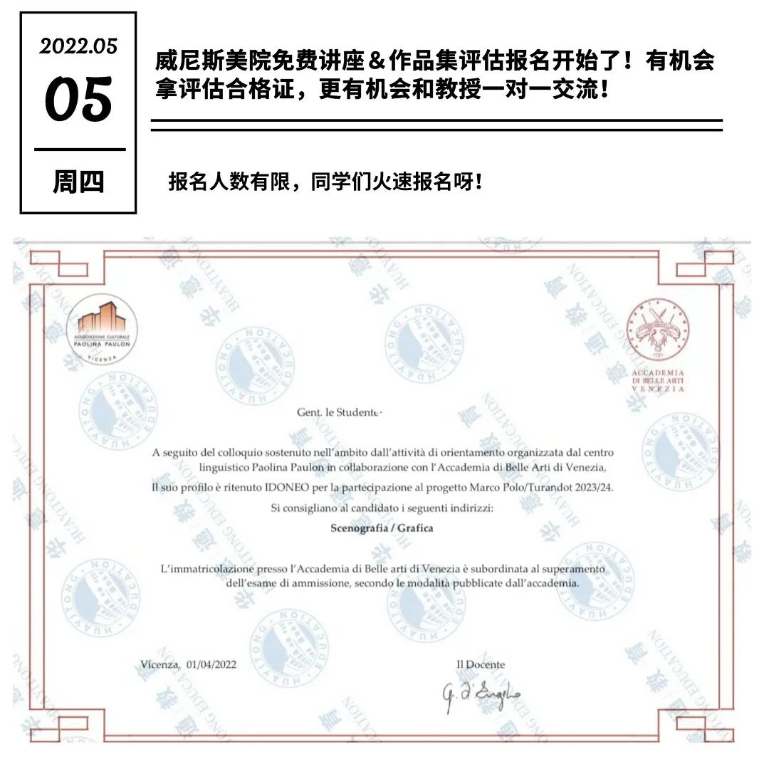 已经看过咱们华意通5月份大事记的同学一定发现了本月有一场相当重量级的意大利美院活动——威尼斯美院! 没错!就是这所为意大利六大美院之一、拥有260多年历史的世界著名老牌美院、文艺复兴时期“威尼斯画派”的传承地的威尼斯美院。 咱们本次特意为大家请来了威尼斯美院的教授为大家做讲座,介绍这座历史悠久的美院以及美院中开设的课程,还有就是讲解入学考试相关问题,以及自由问答环节。当然,本次活动可不光只有这些,除此之外还有最重要的:作品集评估! 想要了解咱们本次威尼斯美院的讲座&作品集评估活动,就跟着可仔继续往下看吧!
