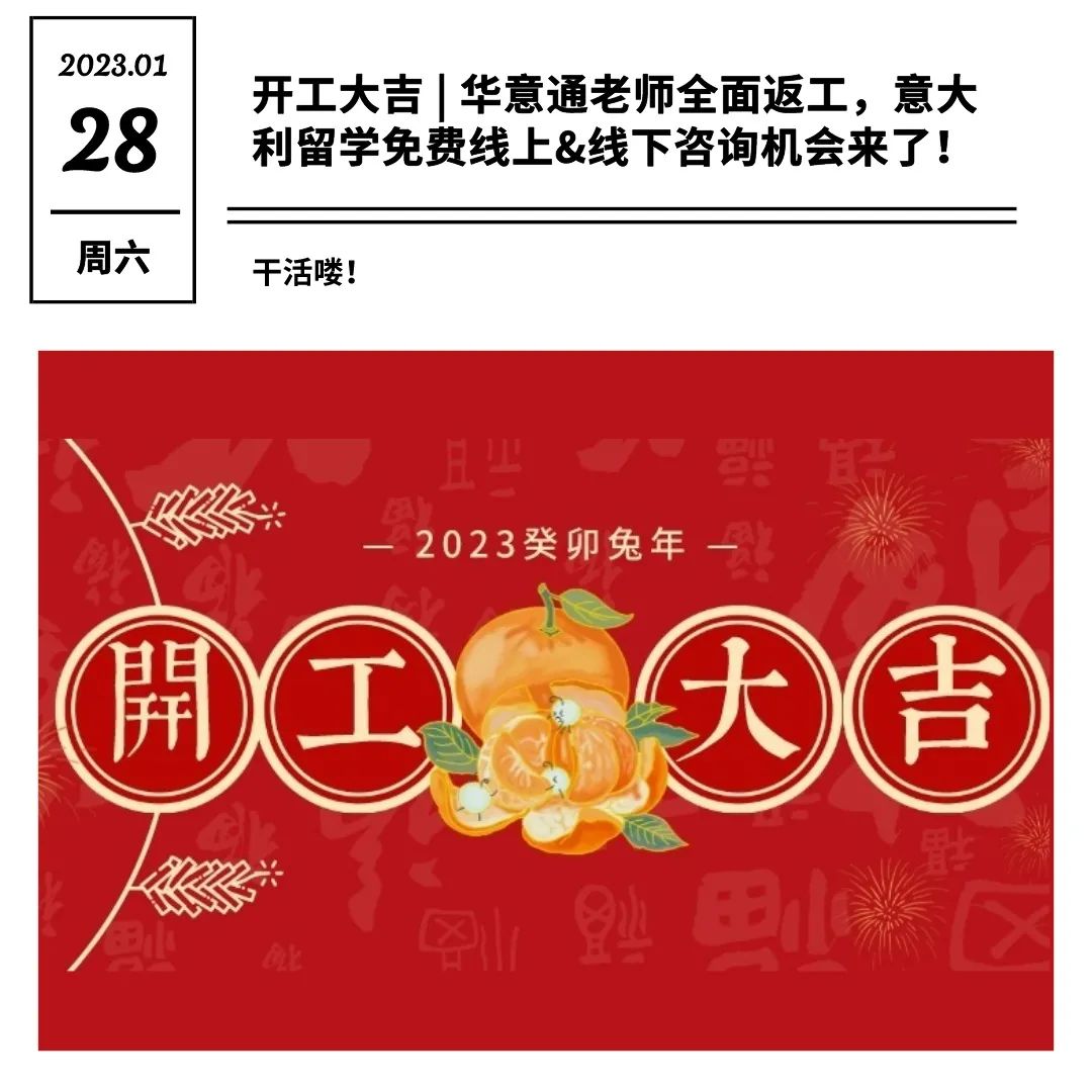 开工大吉 | 华意通老师全面返工,意大利留学免费线上&线下咨询机会来了!