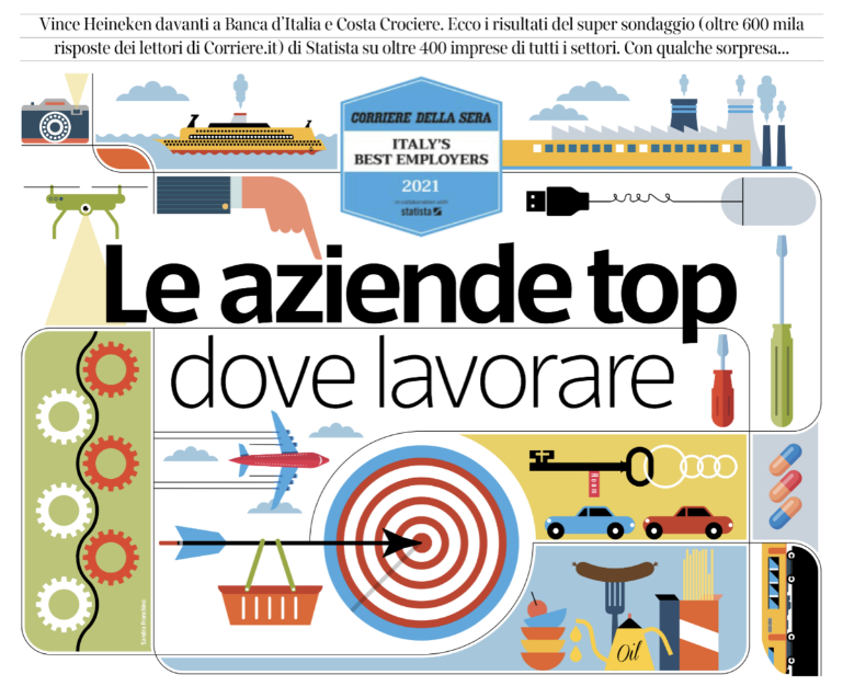 2020年10月26日,意大利晚邮报下属的《经济学周刊:“L\'Economia” del “Corriere della Sera”出版了2021年意大利最佳雇主排名(Italy\'s Best employers 2021), 该排名是由位于德国的一家数字平台STATISTA根据65万员工问卷整理的,20大行业、400家企业上榜,包括教育、服装、互联网等。
