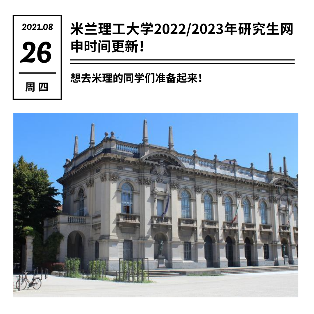 米兰理工大学2022/2023学年研究生网申信息更新啦!! 直接看一下官网信息!