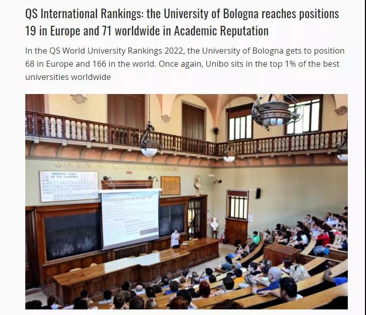 今天小达人看到了一则关于博洛尼亚大学的新闻:在2022年QS大学排名中,博洛尼亚大学的学术声誉位于意大利第1位,欧洲第19位,世界第71位!